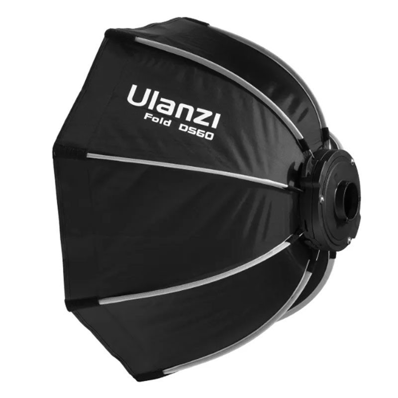Ulanzi DS60 از فرم هشتضلعی سهموی (Parabolic Octagonal) بهره میبرد. شکل سهموی بهدلیل بازتاب متمرکز داخلی، نور را با کنترل بیشتری به سمت جلو هدایت میکند و کیفیت نوری مشابه یک "بیوتی دیش بزرگ" اما با انتقال نرمتر بین نور و سایه تولید میکند که برای پرتره و هدشات ایدهآل است.