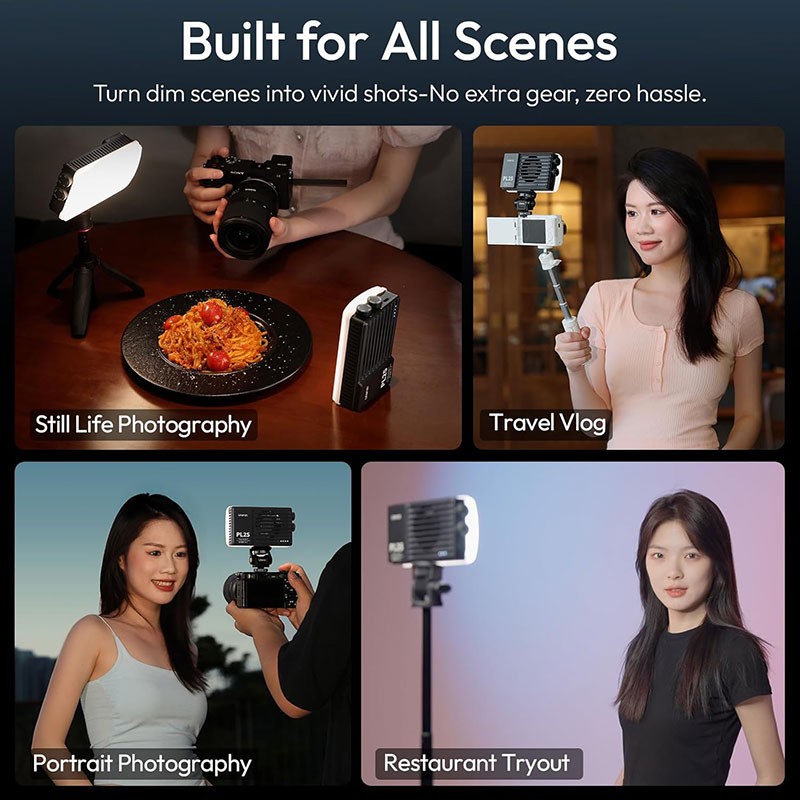 * جبران نور محیط در فضای بیرون: وقتی در یک روز ابری یا زیر سایه درختان مشغول ضبط هستید، Ulanzi PL25 به اندازهای قدرتمند است که بتواند بهطور مؤثر صورت شما یا سوژه را روشن کرده و با نور محیط رقابت کند.